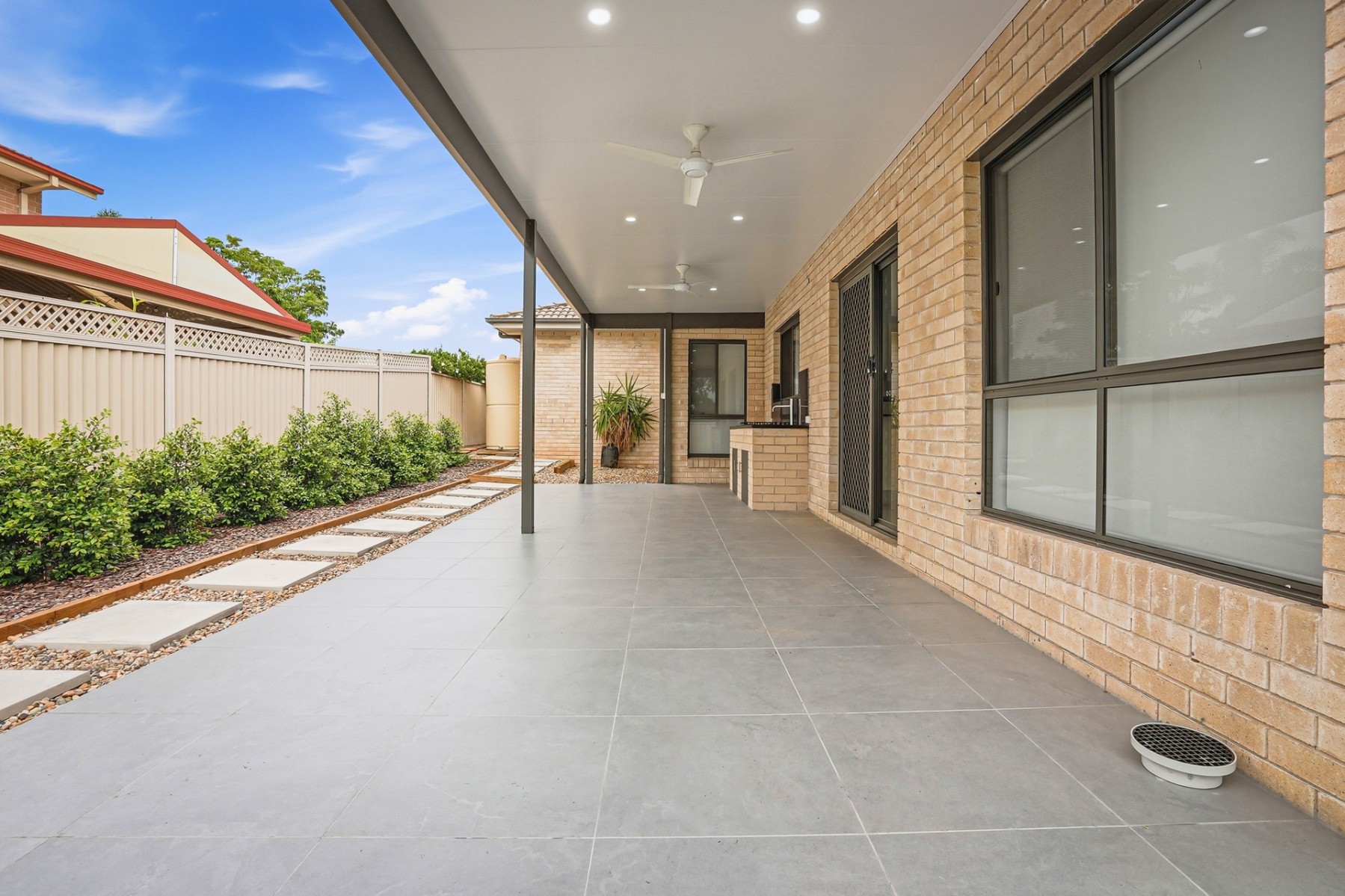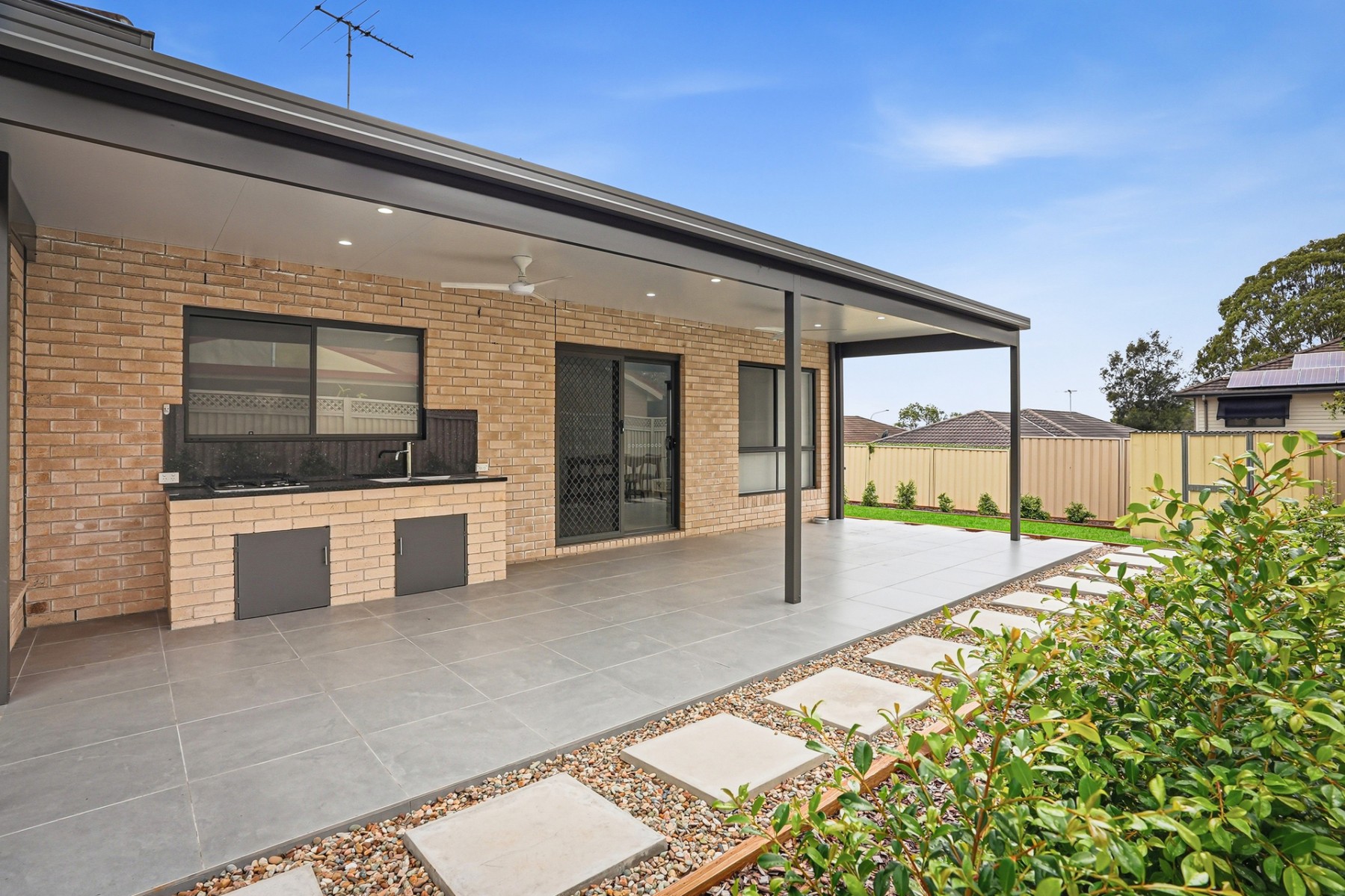 - Fantastic outdoor entertaining area featuring downlights, ceiling fan plus an outdoor kitchen within the insulated pergola complete with sink and gas cooktop, ideal for weekend BBQs and gatherings