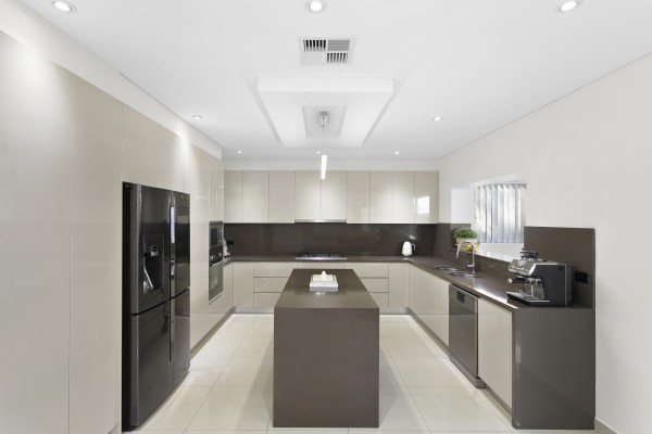 * Chic and spacious gas kitchen with stone bench tops