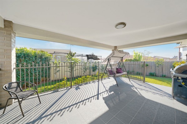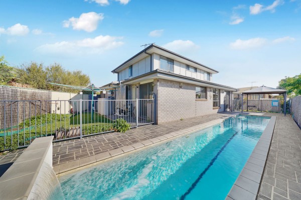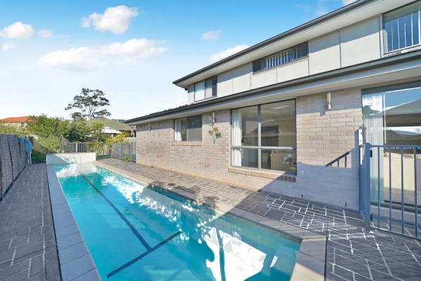 - Alfresco with sparkling salt water lap pool with solar heating