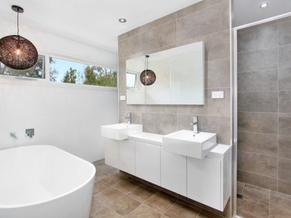 * 3 bathrooms, all with custom built polyurethane wall hung vanities and 40mm stone bench tops