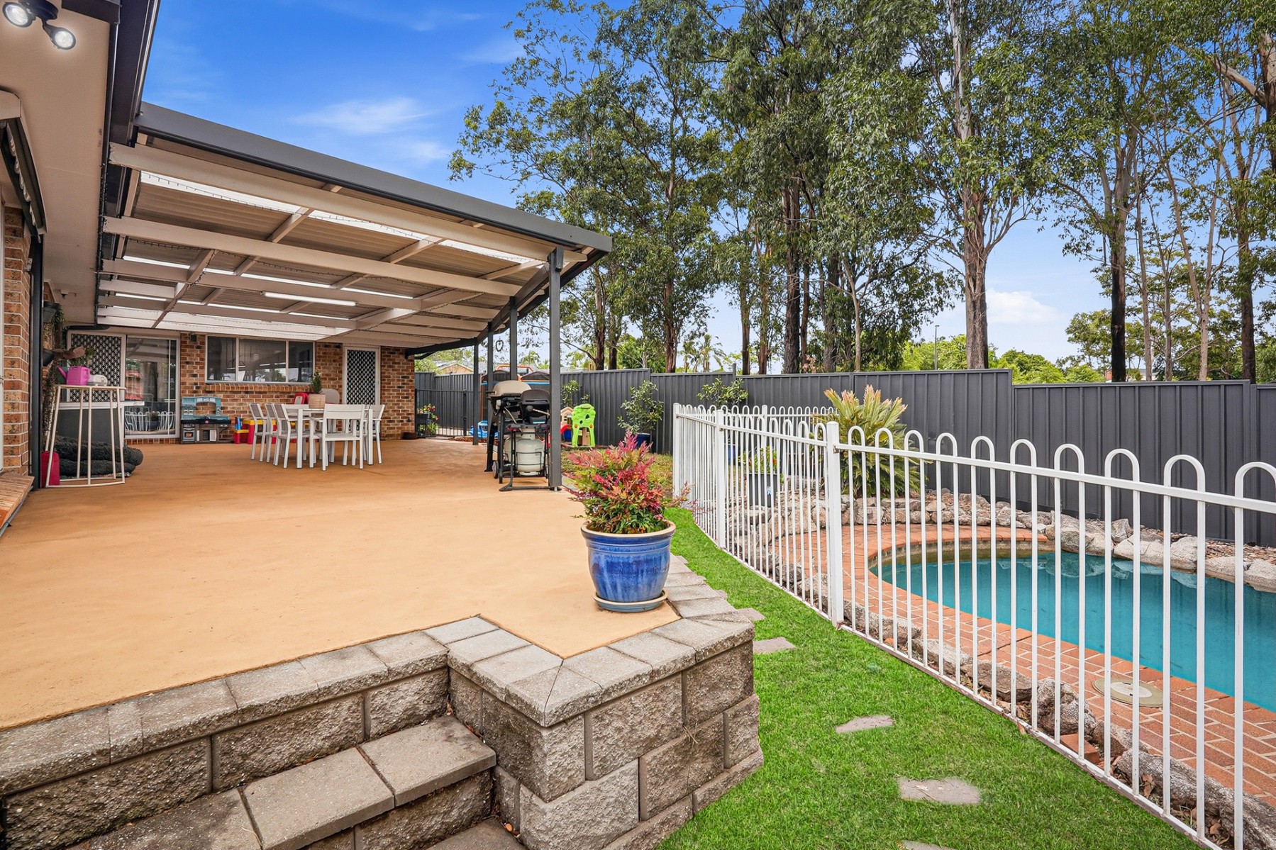 - Expansive backyard designed for entertaining, complete with undercover pergola, storage shed and a stunning saltwater pebblecrete in-ground pool – with pump and salt chlorinator both under 1 year old