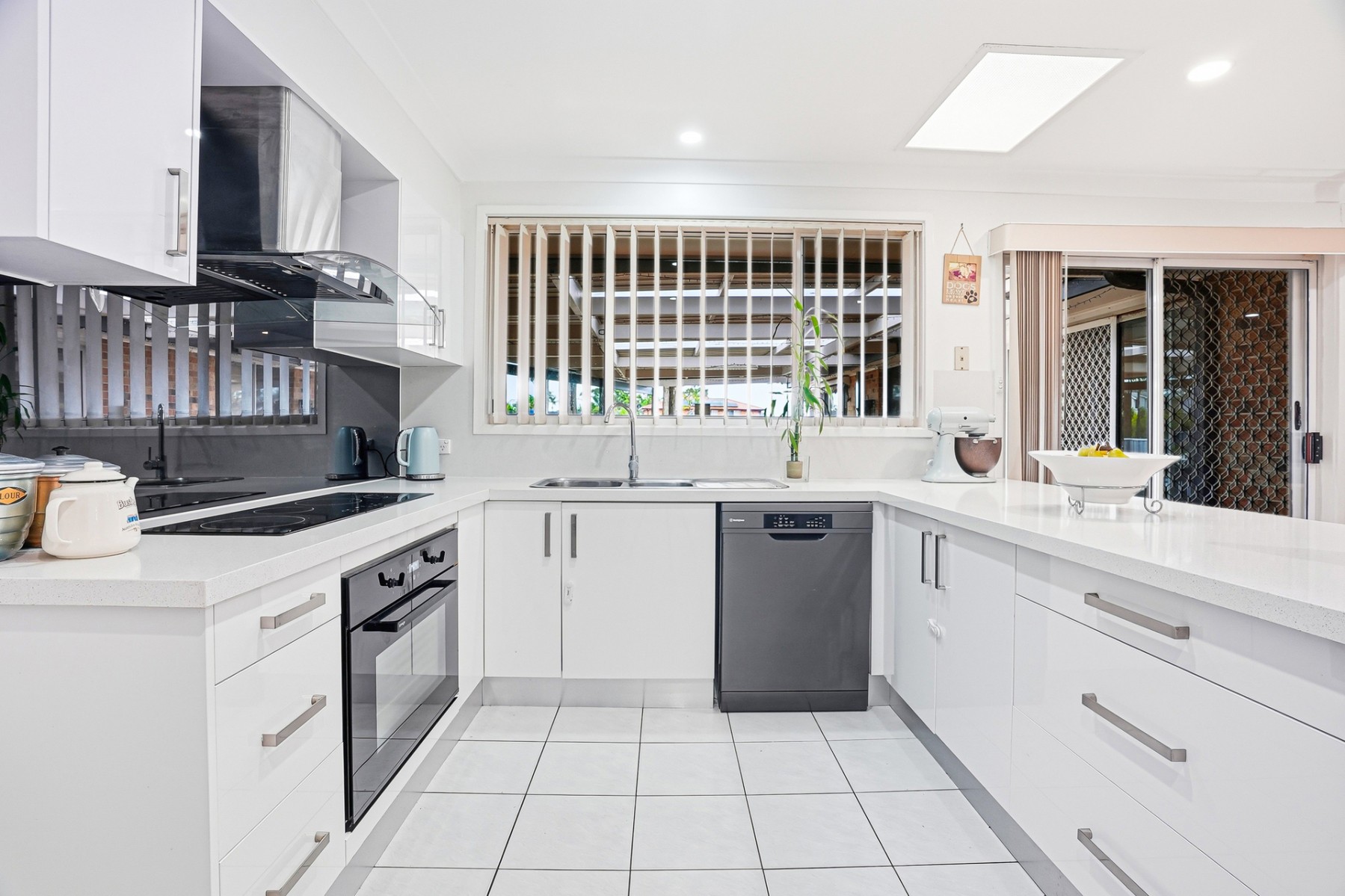 - Renovated kitchen at the heart of the home, featuring Caesarstone benchtops, electric Omega oven and Westinghouse dishwasher (both less than 1 year old), Schott Ceran electric cooktop, double sink and abundant storage – ideal for everyday family living and entertaining