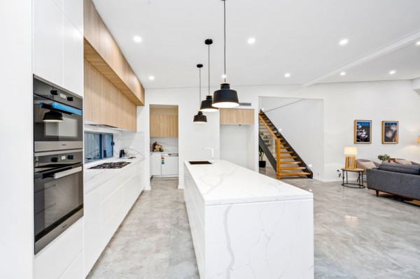 ~ Immaculate gourmet kitchen with large breakfast bar & Miele appliances, smartstone benchtops