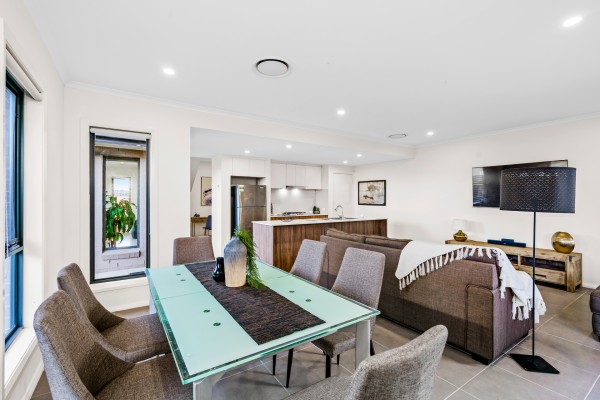 Open plan Dining & Family area flowing into the Tiled Alfresco.