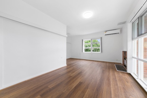 * Bright sun drenched L shaped living space with new hybrid timber flooring throughout