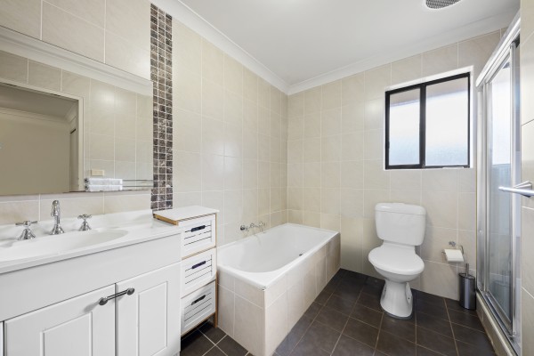 * Modern fully-tiled bathroom with second toilet