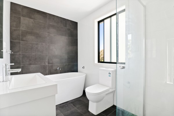 -Main bathroom upstairs, with freestanding bath & floor to ceiling tiles