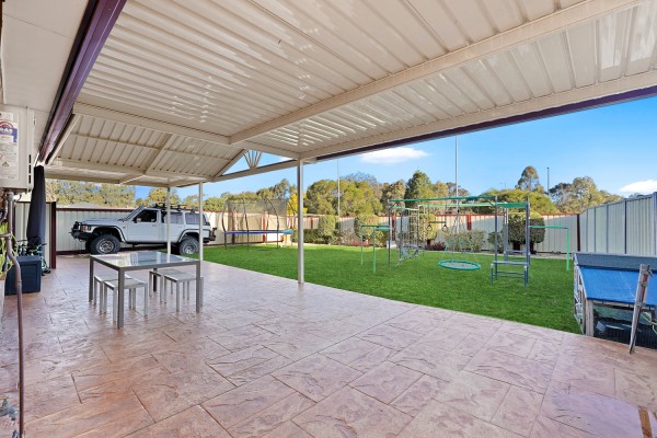 OUTDOORS: Huge pergola area overlooking great size manicured yard which has room for a pool or granny flat (subject to council approval) plus another carport/pergola on the other side of the house.