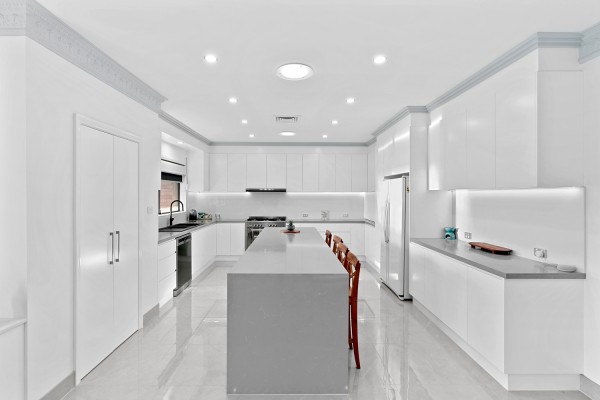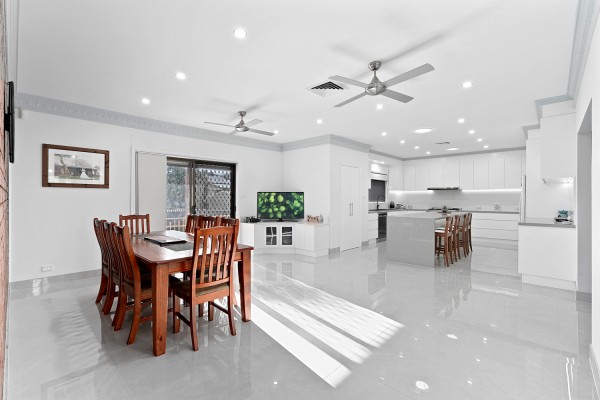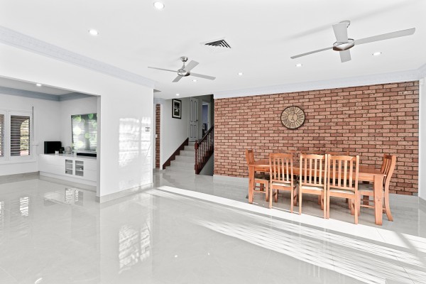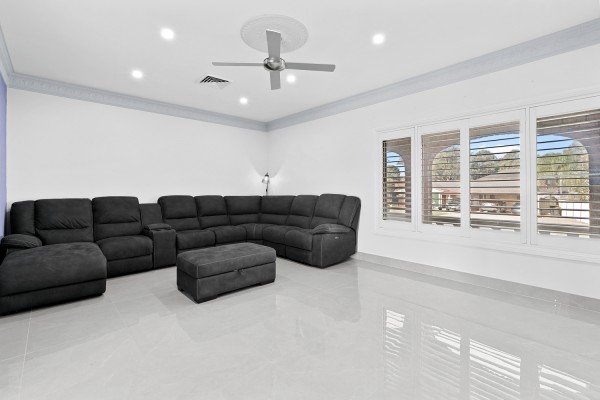 LIVING SPACE: Large lounge room with built-in cabinet with caesarstone benchtop on entry with a seperate large dining room off the kitchen, both with ceiling fans and downlights throughout. There is also a rumpus room with bar area on the ground floor and an additional games room for the kids.