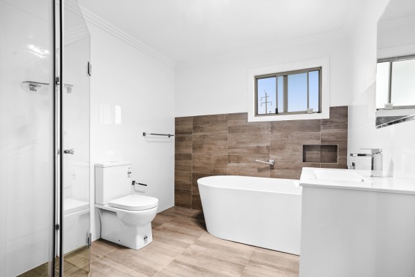 THE BATHROOM: Ultra modern main bathroom is located upstairs offering a separate bath and shower. There is also an ensuite to the main bedroom and a 3rd toilet downstairs in the laundry