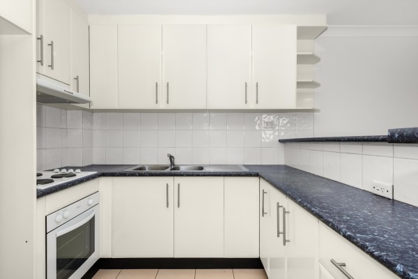 * Neat kitchen with electric cooking and ample storage