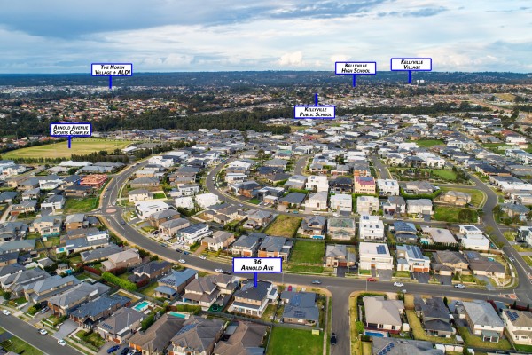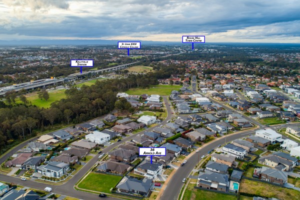Impressive proportions positioned on an approx. 727.8 sqm with 21m+ frontage on a North-East facing block. Its premiere location makes this designer home a standout. Located in the prime pocket of Kellyville on Arnold Avenue, just moments from Kellyville Metro and Norwest business park, this home offers an elevated lifestyle with proximity to the area's best amenities.