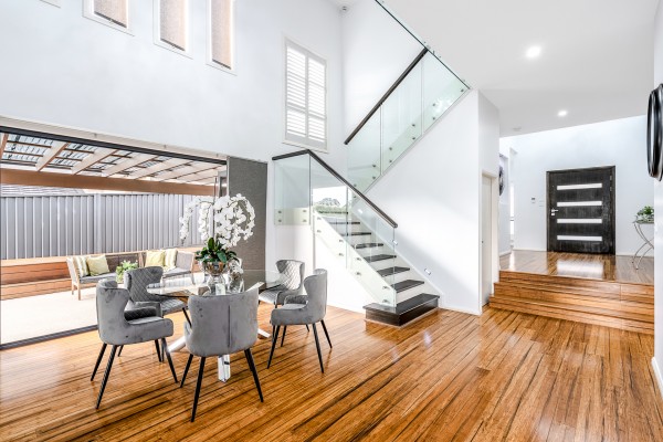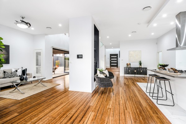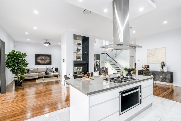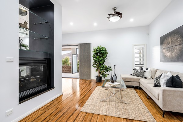 Beyond an impressive façade, find an abundance of living areas to choose from, with a substantial internal floorplan. There's a spacious formal lounge, a large study for the home office, and a sweeping open plan living/dining area with a beautiful dual-sided fireplace. French bleed flooring and abundant natural light throughout makes the house feel warm from every aspect.