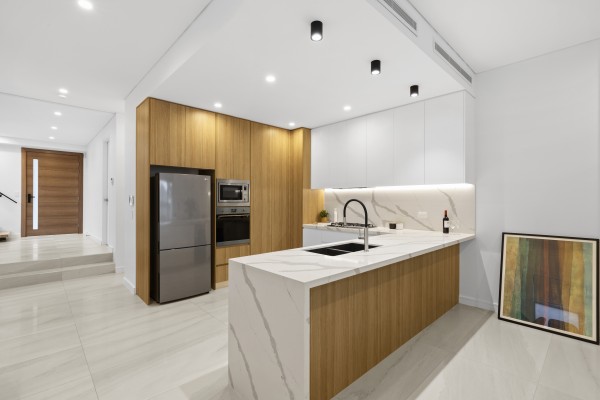 * Large gas kitchen with Calacatta marbled stone bench tops