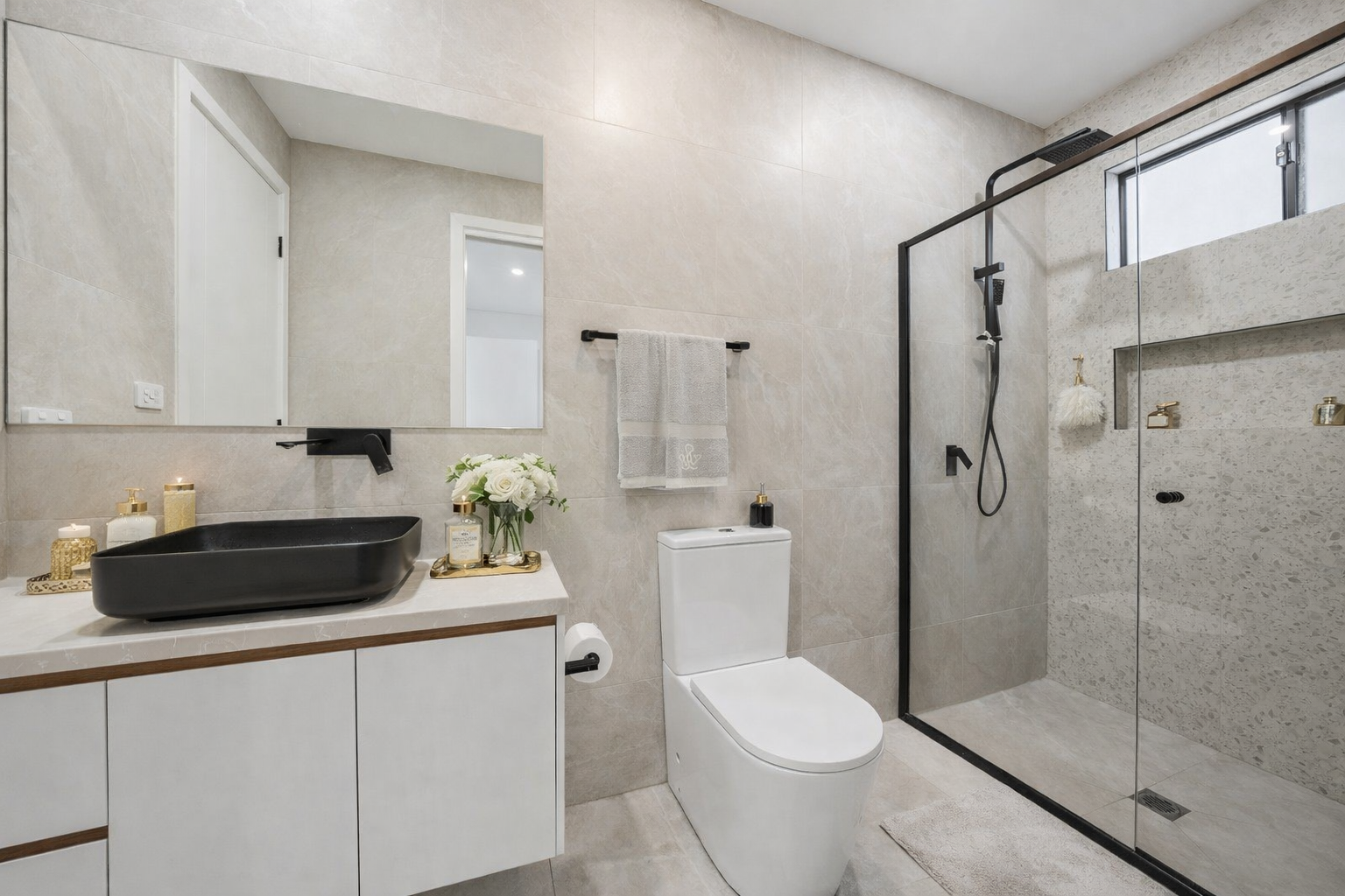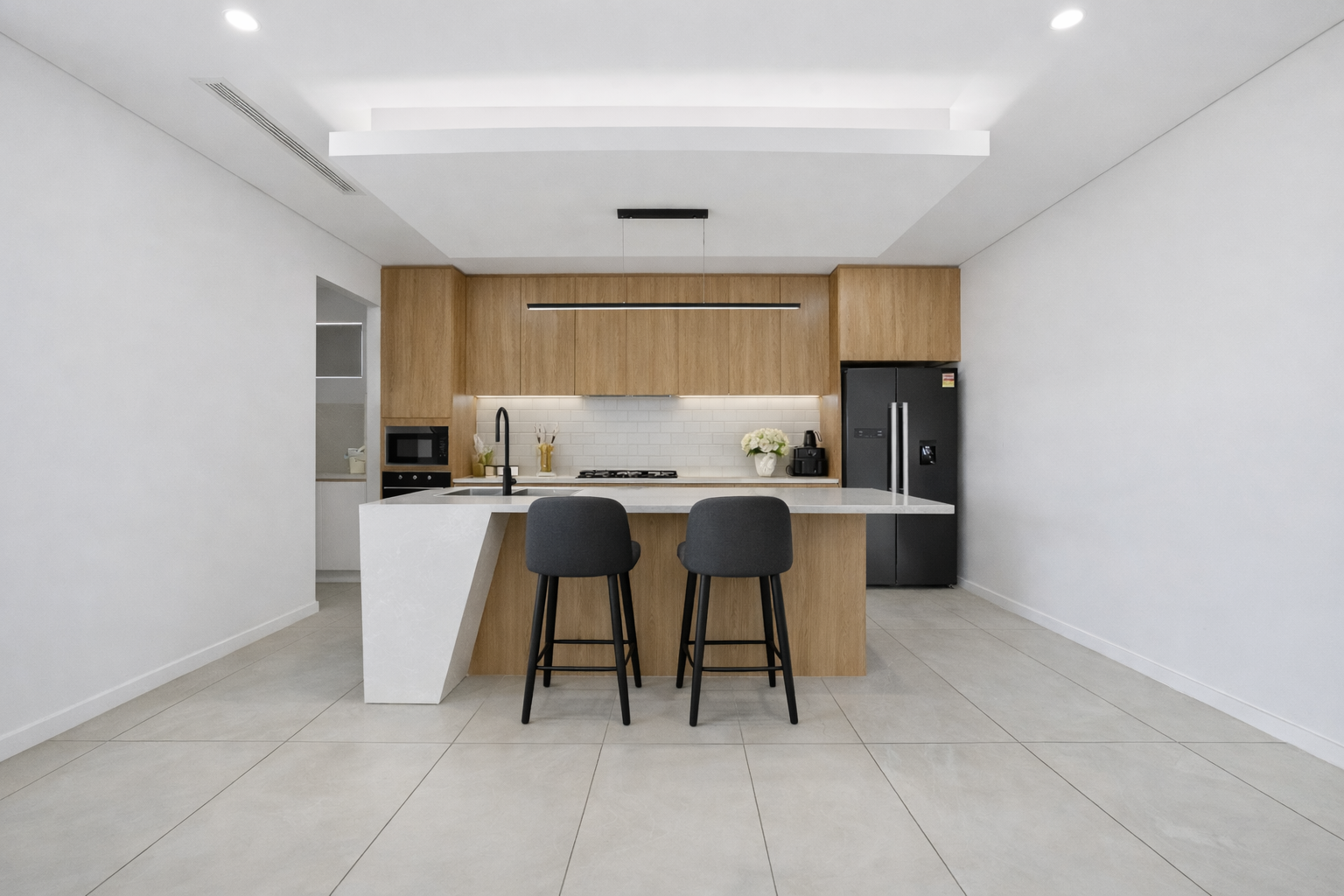 • Contemporary kitchen with stone benchtops, quality appliances, and ample storage
