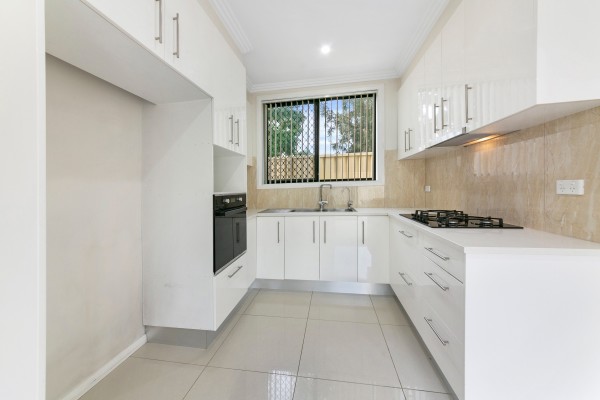 + This modern kitchen includes stainless steel appliances and stone benchtops