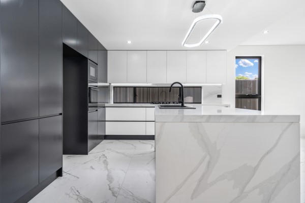 Loaded with contemporary features including quality tile and timber flooring and ducted air-conditioning, a separate lounge and family room, designer gas kitchen with extra-large six-burner cooking, vogue splash-backs, Caesarstone benches with island and floor to ceiling cupboards, three stylish designer bathrooms plus an extra toilet in laundry, a downstairs home office/guest bedroom, four upstairs bedrooms all with built-in robes including a spacious master with ensuite bathroom, walk-in robe and huge private balcony, separate study nook, alarm and Video Intercom, keyless electronic entry lock, top quality double glazed windows, double plus separate driveway to car space and lock-up garage with remote entry. The sunny family room leads directly to an extra-large covered alfresco entertaining space with its' own gas kitchen overlooking a generous landscaped lawn and garden to complete the ultimate brand-new home package.