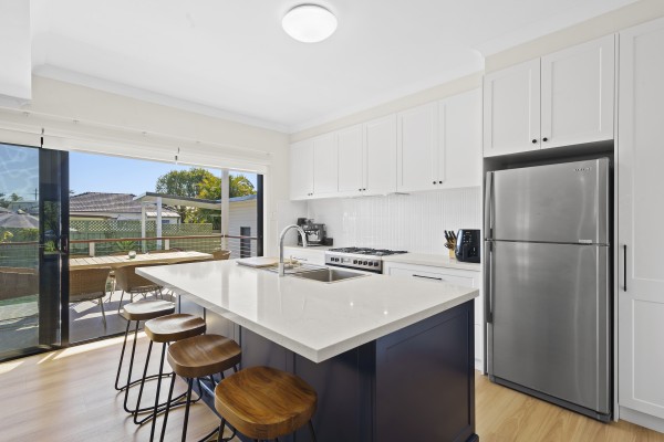 * Large modern gas kitchen with thick stone bench tops