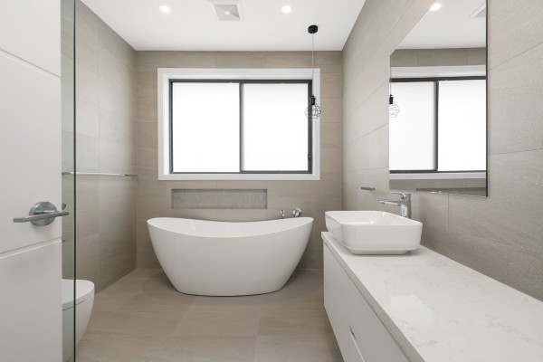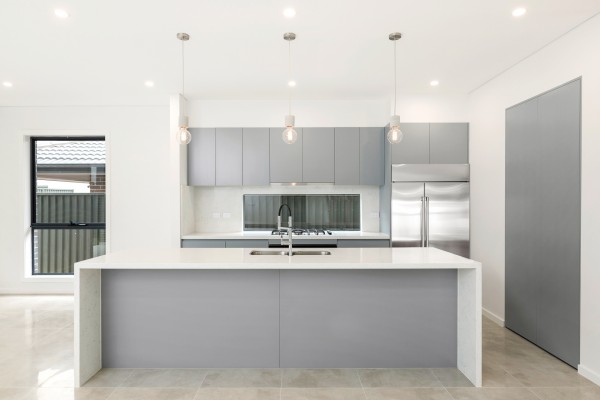 * Waterfall stone bench top, gas cooktop & dishwasher
