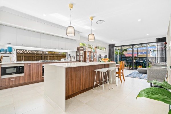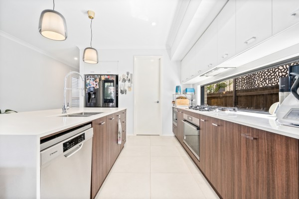 Featuring 4 large bedrooms, main with ensuite and walk in robe, stunning gas kitchen with quality stone waterfall benchtops and island, high-quality appliances and gas cooking, vogue bathrooms, 3 toilets, ducted air conditioning, superior tiled flooring, beautiful wide staircase and internal laundry. Designed with a good-sized dining and family area flowing onto a spacious and comfortable covered alfresco, perfect for entertaining, plus lock-up garage and space for another car.