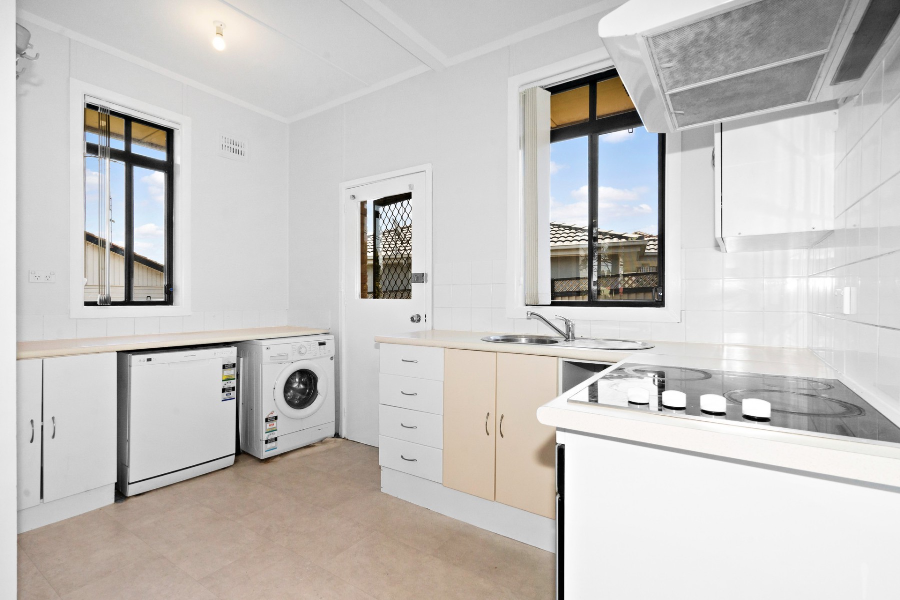 * Kitchen with electric appliances, dishwasher, and ample cupboard space