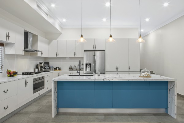 * Beautiful gas kitchen with Calacatta marble bench tops