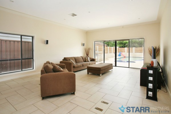 This is certainly one of the largest family homes you are likely to find in the area!! Everything is over size and there is plenty of room for the largest of families with the home boasting four or five king size bedrooms, with the main suite offering a massive walk in robe, balcony plus retreat area spacious enough to play host to a living and TV area. All other giant size bedrooms include loads of built in robes and are easily large enough for teenagers that require study space. Living areas comprise of a media room/5th bedroom, impressive formal dining platform with glorious timber flooring, absolutely huge open plan living/dining/casual meals area plus an additional upstairs living area. The kitchen is designed with the chef in mind and includes ILVE appliances, stone benches and undoubtedly the largest walk in pantry you will find. The home is sitting on a sensational block of approx 696m2 complete with a double drive thru garage, huge undercover entertaining areas plus a magnificent gas heated inground pool complete with separate spa. Other luxury features of this spectacular home include high ceilings and fancy cornices, ducted & zoned air conditioning with climate control to every room, beautiful bathrooms, stone tiling, provision for Cbus wiring and plenty of storage space. This gorgeous home is located in a lovely quiet street within 600m of schools, shops and bus transport, which truly makes this the ideal family home that you will never outgrow.