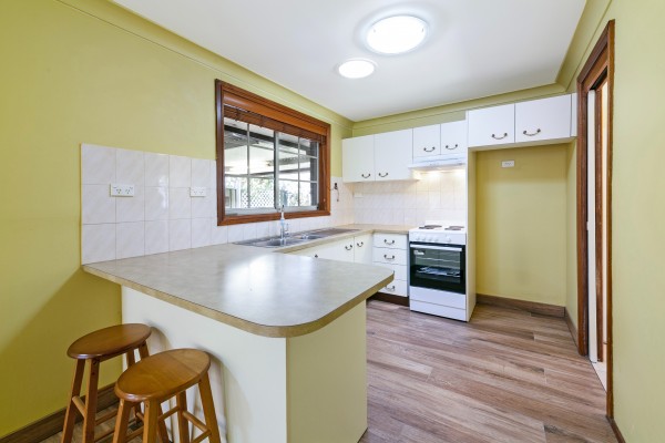 + Tidy kitchen with laminate benches and electric cook-top