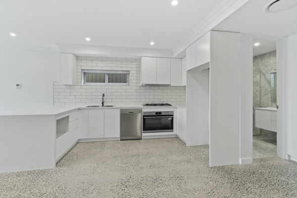 * Modern kitchen with 900mm gas cooktop and dishwasher