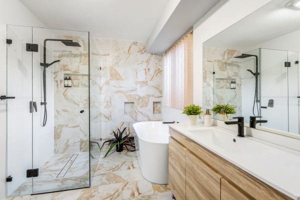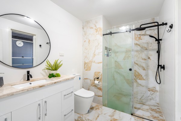 ~ Two sleek bathrooms with quality touches, finished to the highest standard