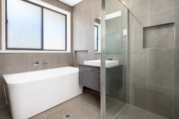 * Modern bathroom with bathtub