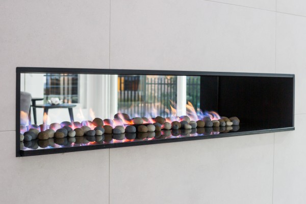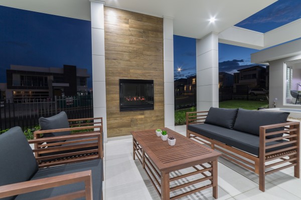 ~ Real flame fireplace in main living and alfresco.