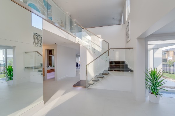 ~ Huge entry void containing Victorian Ash Cantilevered staircase with glass balustrades