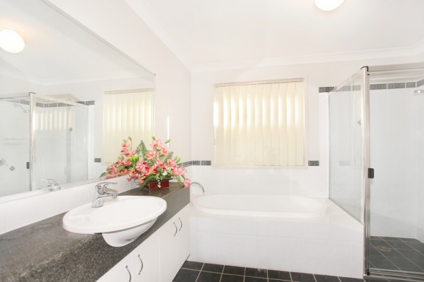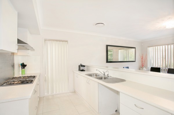Inclusive of central high ceilings, large separate living areas, a modern gas kitchen with stainless steel appliances and a breakfast bar overlooking the meals and dining rooms which open to a low-maintenance private courtyard.