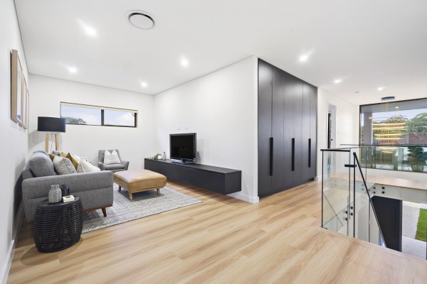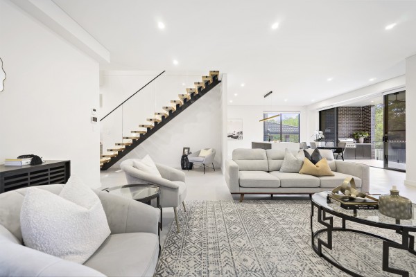 - Grand entrance with a 7m void and custom glass floating stairs with LED lights