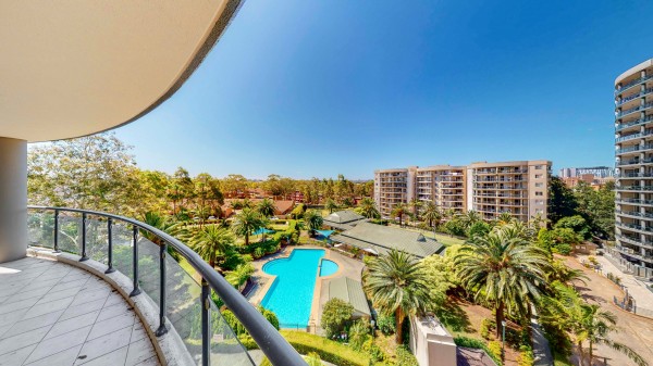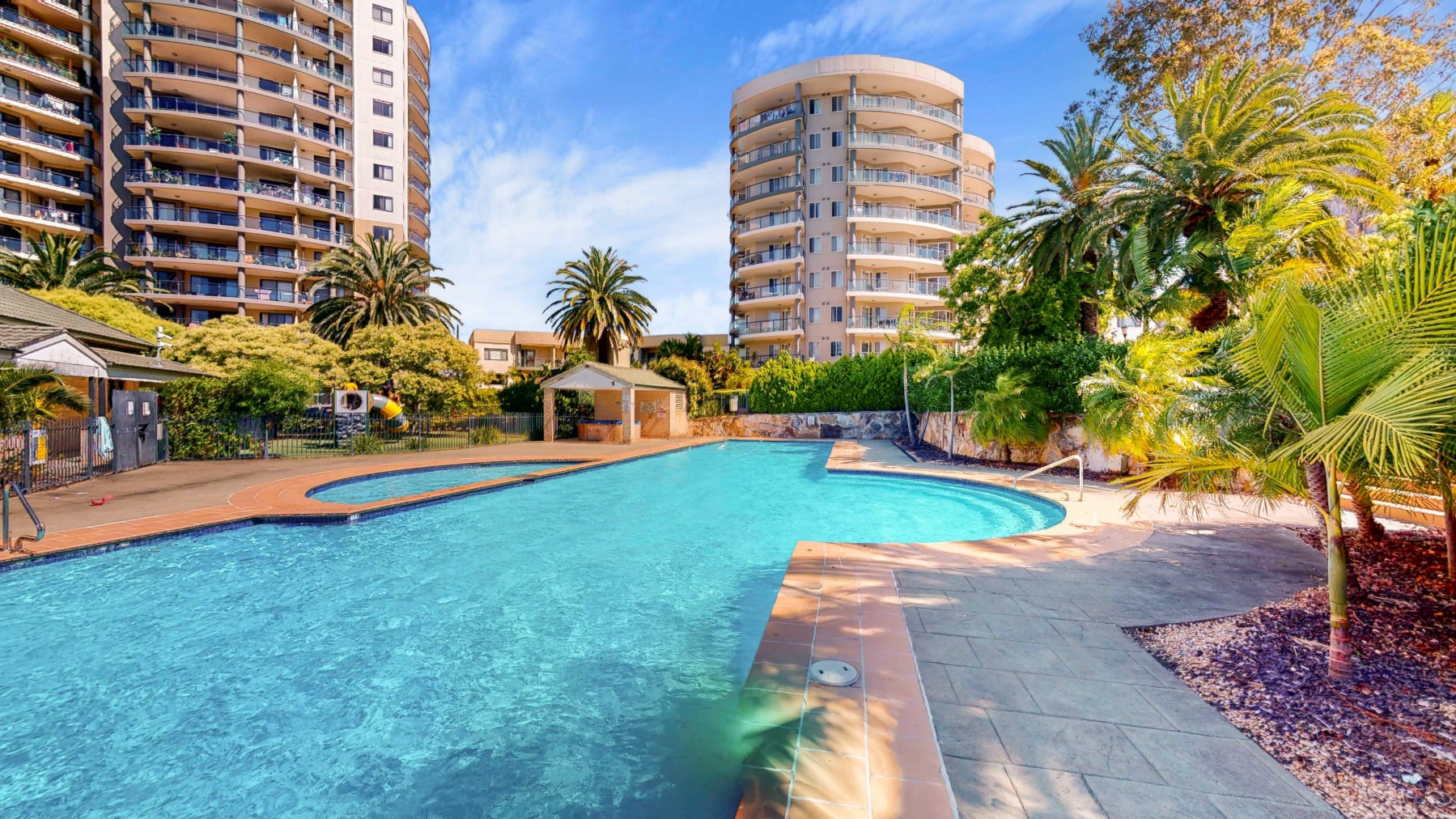 This spacious 2 bedroom apartment on the sixth floor offers a huge Open Plan Living and Dining area, Brilliant Views of the Pool and Gardens below with a wrap around balcony.