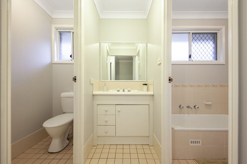 ~ Bathroom with separate toilet area.