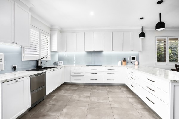 THE KITCHEN: Beautifully renovated kitchen with plenty of quality features including an induction cooktop, double oven, 2 drawer dishwasher, 2 fridge spaces (plumbing to 1), a breakfast bar with pendant lighting and an extensive amount of bench and cupboard space.