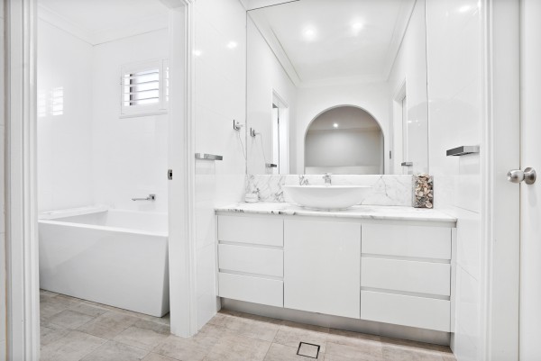 THE BATHROOM: Renovated 3-way main bathroom upstairs with a separate bath and shower, plus a separate toilet. The main bedroom also offers a renovated ensuite. A third bathroom is located downstairs off the rumpus room.