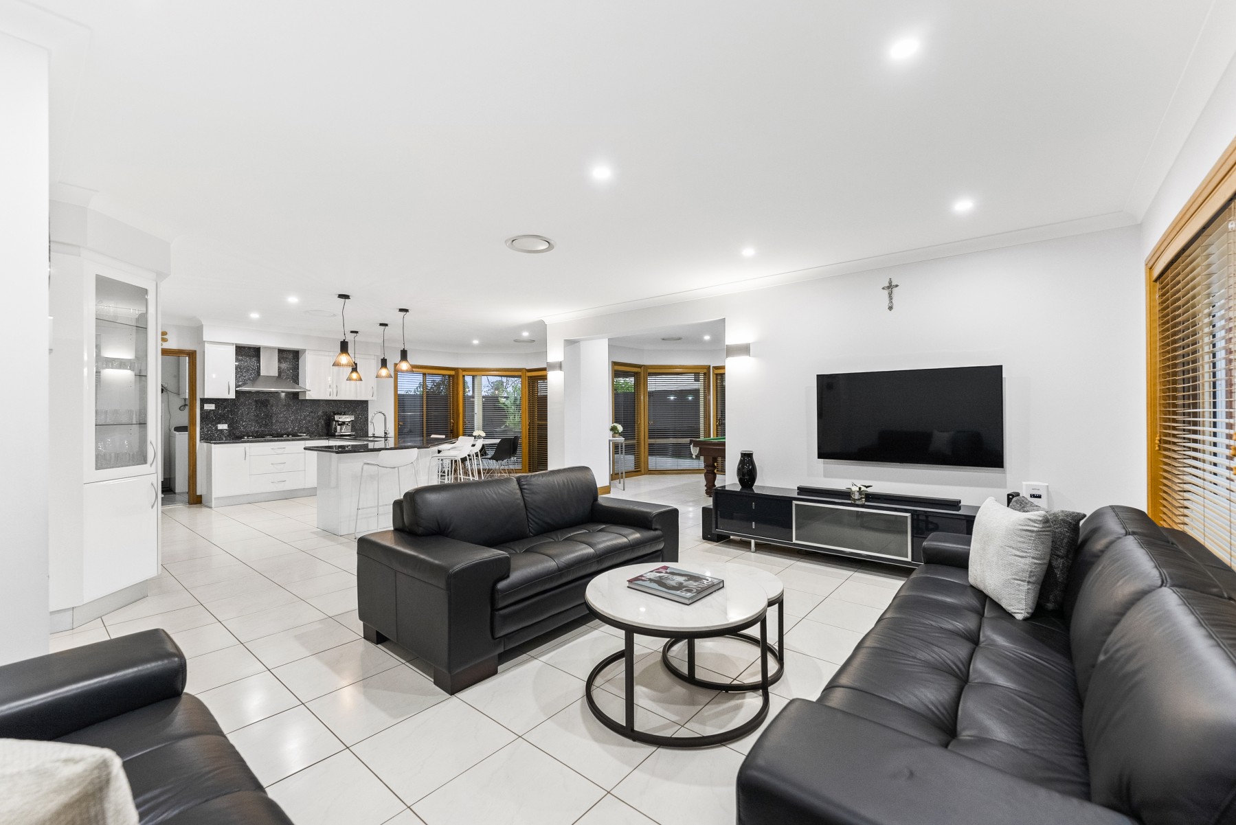Set on a generous 613.4 sqm block surrounded by landscaped gardens, this outstanding five-bedroom family home comes with all the premium inclusions for first class living. Completed with easy-care tiled and polished timber flooring, LED lighting and ducted air-conditioning throughout, there is nothing more to spend in a residence filled with options. Made to support the larger family, the generous floorplan includes separate formal and informal dining, formal lounge, a sunny family room, rumpus, plus upstairs sitting room with balcony access. Features include a spacious kitchen with stone bench tops and large breakfast bar, internal laundry, a convenient downstairs bathroom and bedroom, plus a large upstairs bathroom servicing four upper bedrooms all with built-in robes including a master with ensuite bathroom and walk-in robe.
