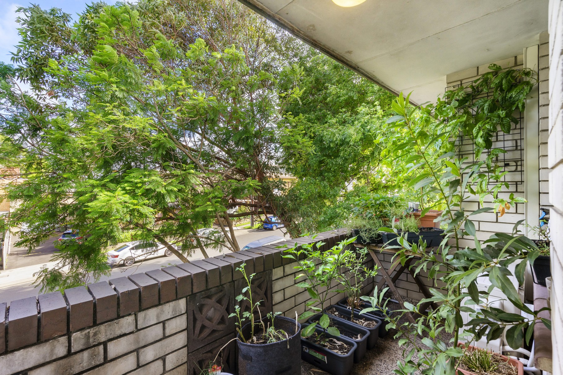 • Bright, air-conditioned living area opening onto a leafy balcony