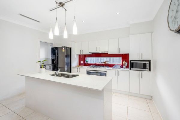 - Open plan kitchen with stone benchtop, butlers pantry and gas cooking