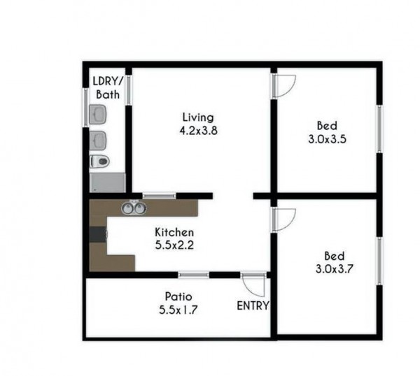 * Combined bathroom & laundry with shower, toilet, basin & laundry sink