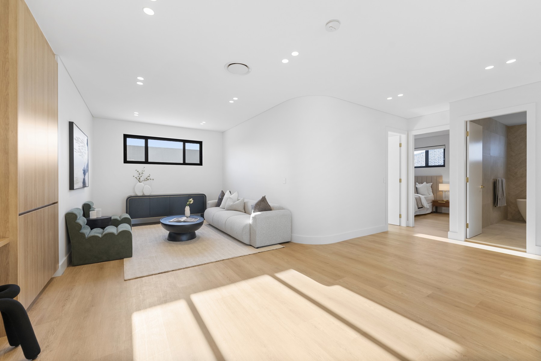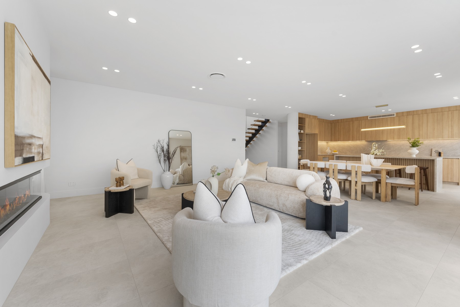 From the street aspect through to the private enclosed courtyard with in-ground swimming pool, this home impresses with its clever contemporary design and superior liveability. The breath-taking entry with vaulted ceilings, custom chandelier and exposed staircase with glass banister and wide hallway delivers a grand sense of space and natural light which flows through every room. Boasting premium flooring, ducted air-conditioning and energy efficient LED lighting throughout, nothing has been left to chance in this fully equipped residence. Living spaces include a large downstairs lounge with custom fireplace looking out to your pool and alfresco entertaining area, plus an additional large upstairs family room with custom cabinetry including convenient study desks.