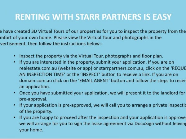 We have high quality 3D Virtual Tours, photos, and floor plans to enable you to inspect & lease properties online.