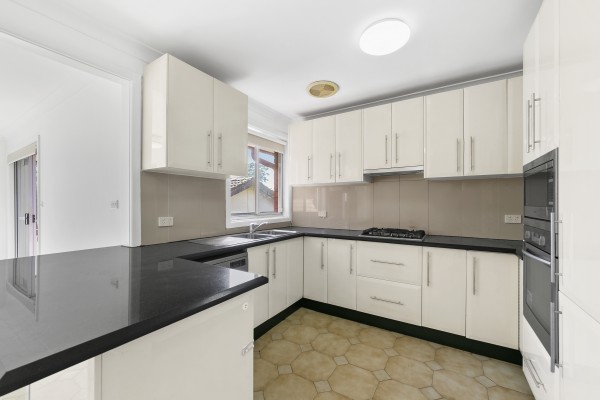 * Gas kitchen with stone bench tops