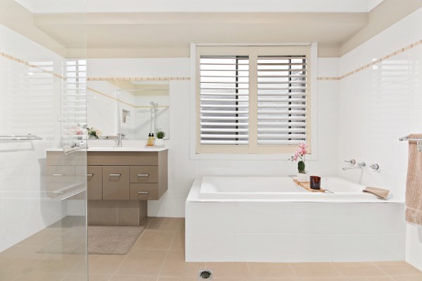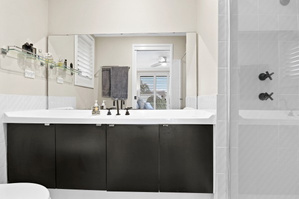 THE BATHROOM: This home offers 2 main bathrooms, one with a separate bath and shower, and the other with just a shower. There is also an ensuite bathroom to the main bedroom.