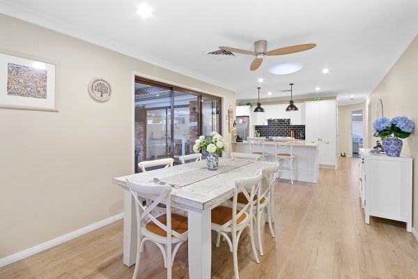 THE LIVING SPACE: Spacious formal lounge room with a separate formal dining area on entry. There is also a huge informal dining & family area at the rear of the home featuring ceiling fans and providing access to the outdoor area. Low maintenance hybrid floorboards are featured throughout the living areas.