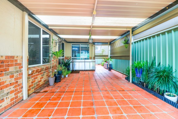 THE OUTDOORS: Paved entertaining area with pull-down weather screens, overlooking the grassed yard- perfect for the kids to play or for pets!