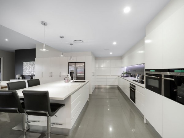 ~ Immaculate gourmet kitchen with stone bench tops, a large breakfast bar & walk in pantry